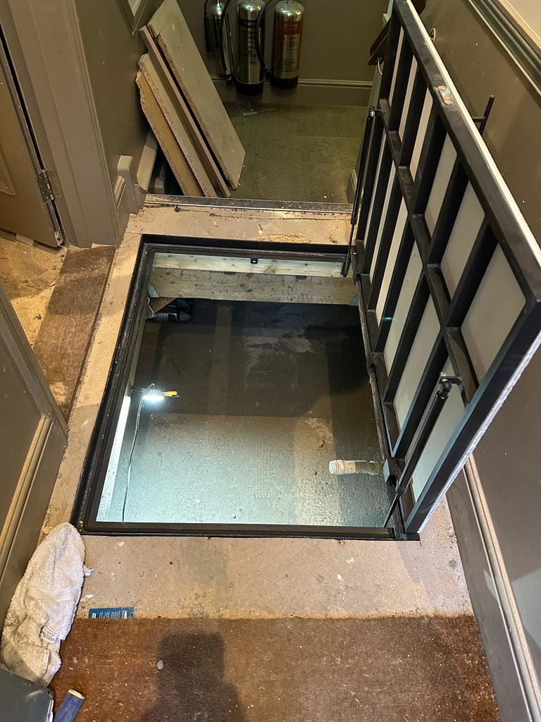 So the room would remain occupied the team installed a new hydraulic access point in the corridor, this will enable the maintenance team in the hotel to access the underfloor area in a safe way to check the pump is operational and for future maintenance.